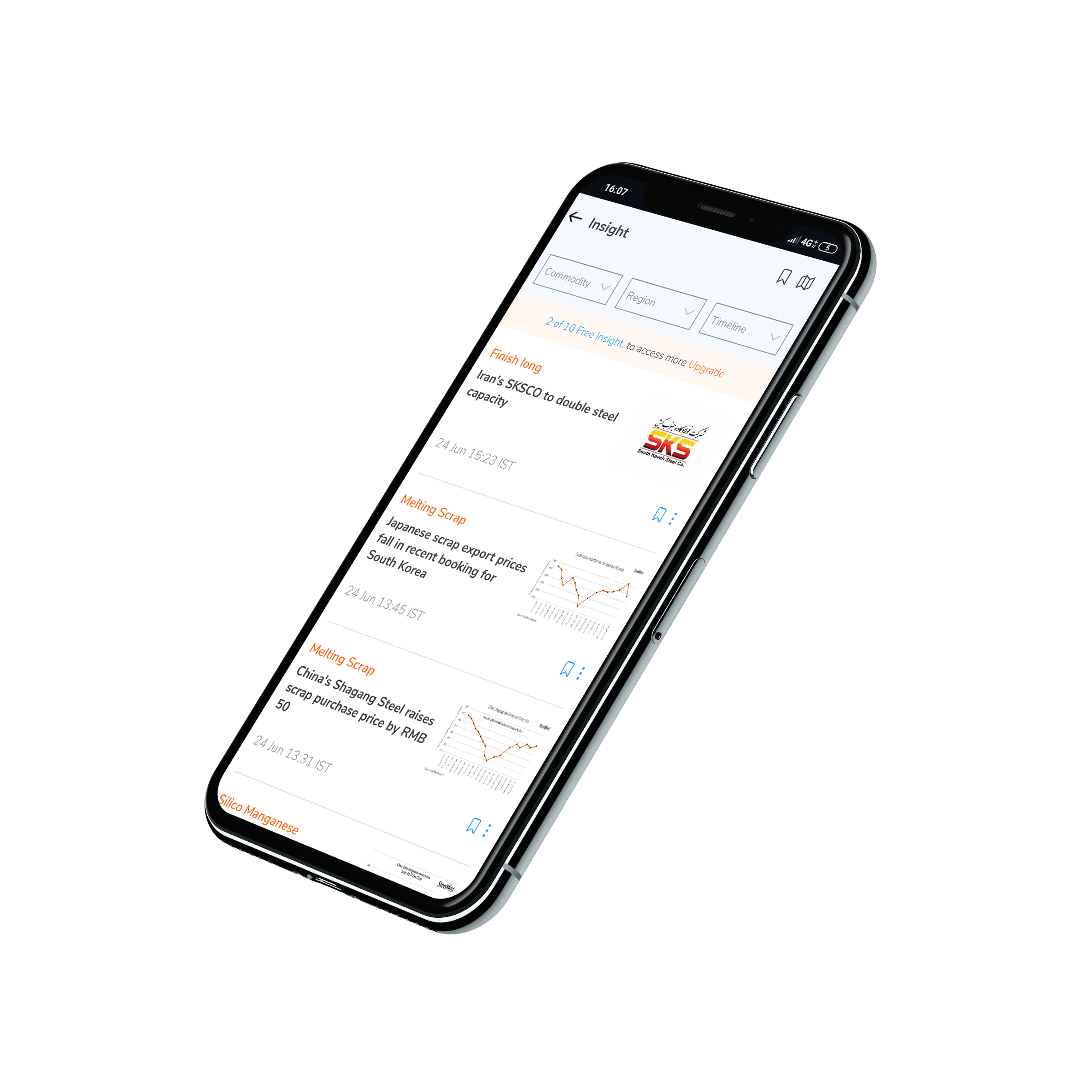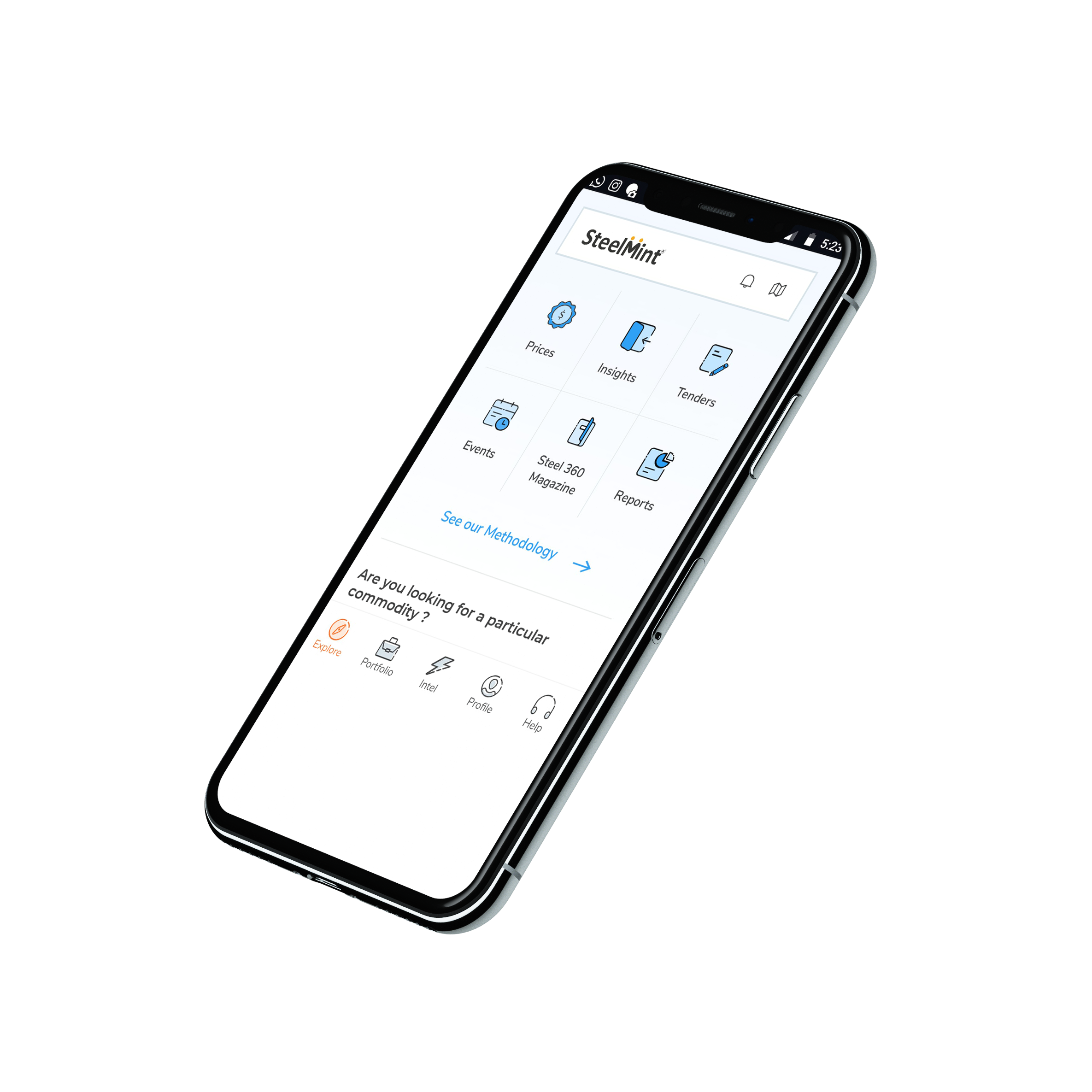 Answer: SteelMint app provides brief updates – Intel, Insights, Steel Prices, Tenders, Events, Steel360 Magazine, and Industry Reports on your mobile App. But to access detailed information, a user must either subscribe to SteelMint mobile app package or have access to SteelMint web services. For more info on SteelMint plans, visit: www.steelmint.com/signup